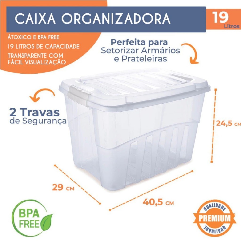 Caixa Organizadora 19 litros Transparente Plasutil - Plástico Transparente Multiuso