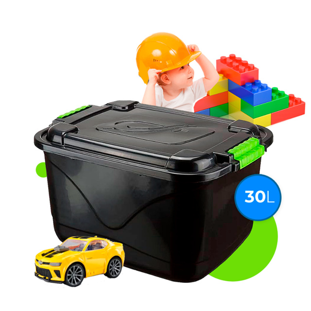Caixa Organizadora 30L Grande C/Tampa e Trava Cesto para Brinquedos e Multiuso