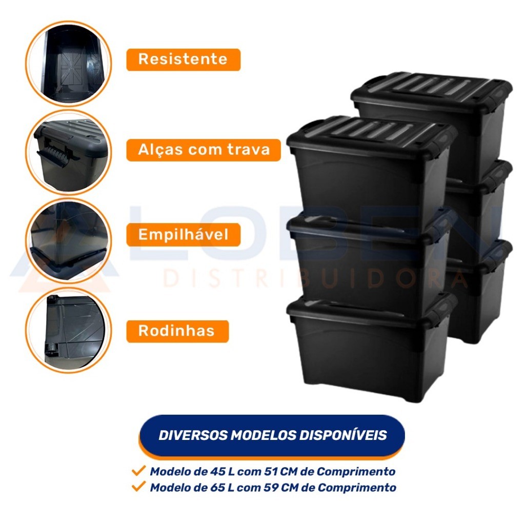 | Caixa Organizadora 45L Preta com Rodinha, Alça e Travas - Para Roup... este produto | R$ 61,47 | 23% | 4.5/5 | — |