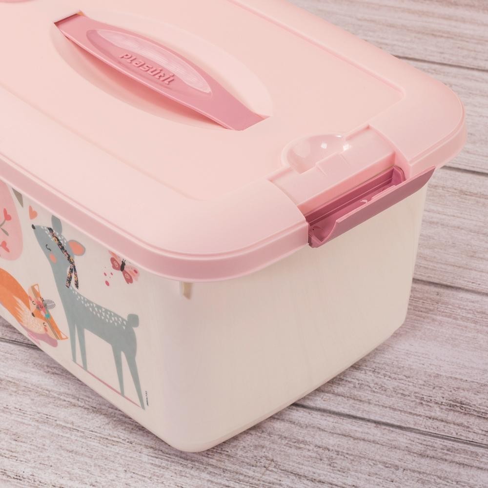 CAIXA ORGANIZADORA 5,2 L INFANTIL TRAVA E ALÇA ROSA PLASÚTIL Dimensao: (Comp x Larg x Alt): 28,0x20,0x15,5 cm Capacidade: 5,2 l - A decoração ¿bichinhos petit¿ é delicada e super atual. Em tons de rosa, ela possui os bichinhos mais fofos da floresta com ornamentos florais que trarão um toque romântico e charmoso ao enxoval da sua princesa. - Atóxico e livre de BPA (bisfenol-A). Fabricada em polipropileno (PP). - Linha coordenada com sua temática preferida. - A caixa de 5,2 L possui tampa, alça e duas travas laterais. Além de decorativa, é uma ótima opção para organizar os itens de higiene, cuidados essenciais da bebê ou até mesmo laços, faixas e presilhas..