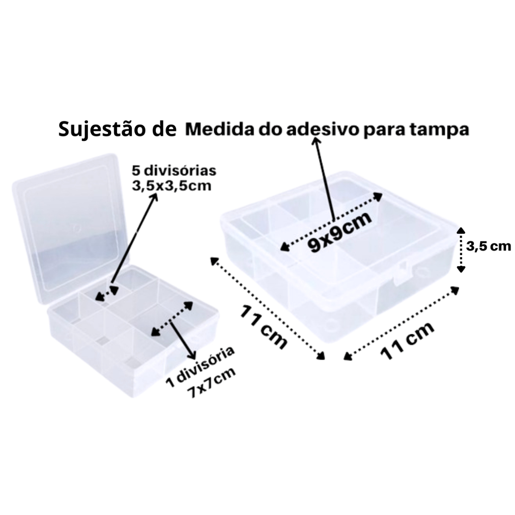 Kit com 10 Caixas Organizadoras com 6 Divisórias – Transparente Praticidade e organização ao seu alcance. Este kit com 10 caixinhas organizadoras é ideal para quem precisa manter pequenos itens bem distribuídos e sempre à mão. Funcionais e versáteis, são perfeitas para uso doméstico, profissional ou para montar kits personalizados. Solucione de vez a bagunça! Com 6 divisórias internas, cada caixa oferece compartimentos ideais para separar e proteger objetos pequenos, evitando perdas, bagunça e desperdício de tempo. Usos mais comuns: - Montagem de kits de lembrancinhas e guloseimas - Armazenamento de bijuterias, miçangas e acessórios - Organização de temperos, especiarias e insumos para gin - Itens de costura, artesanato ou escritório - Acessórios para chimarrão Detalhes do Produto: - Material: Plástico transparente resistente - Tamanho de cada caixa: 11cm x 11cm - Compartimentos: 6 divisórias fixas - Cor disponível: Transparente - Conteúdo do kit: 10 unidades Perguntas Frequentes: 1. Quantas caixas vêm no kit? R: 10 unidades. 2. O produto vem pronto para uso? R: Sim, as caixas já estão montadas e prontas para organizar seus itens. 3. E se eu tiver outras dúvidas? R: Fique à vontade para nos chamar no chat. Nossa equipe está pronta para te atender. Garanta agora mesmo o seu kit e transforme a forma como você organiza seus itens! Confira também nossos outros produtos disponíveis na loja.