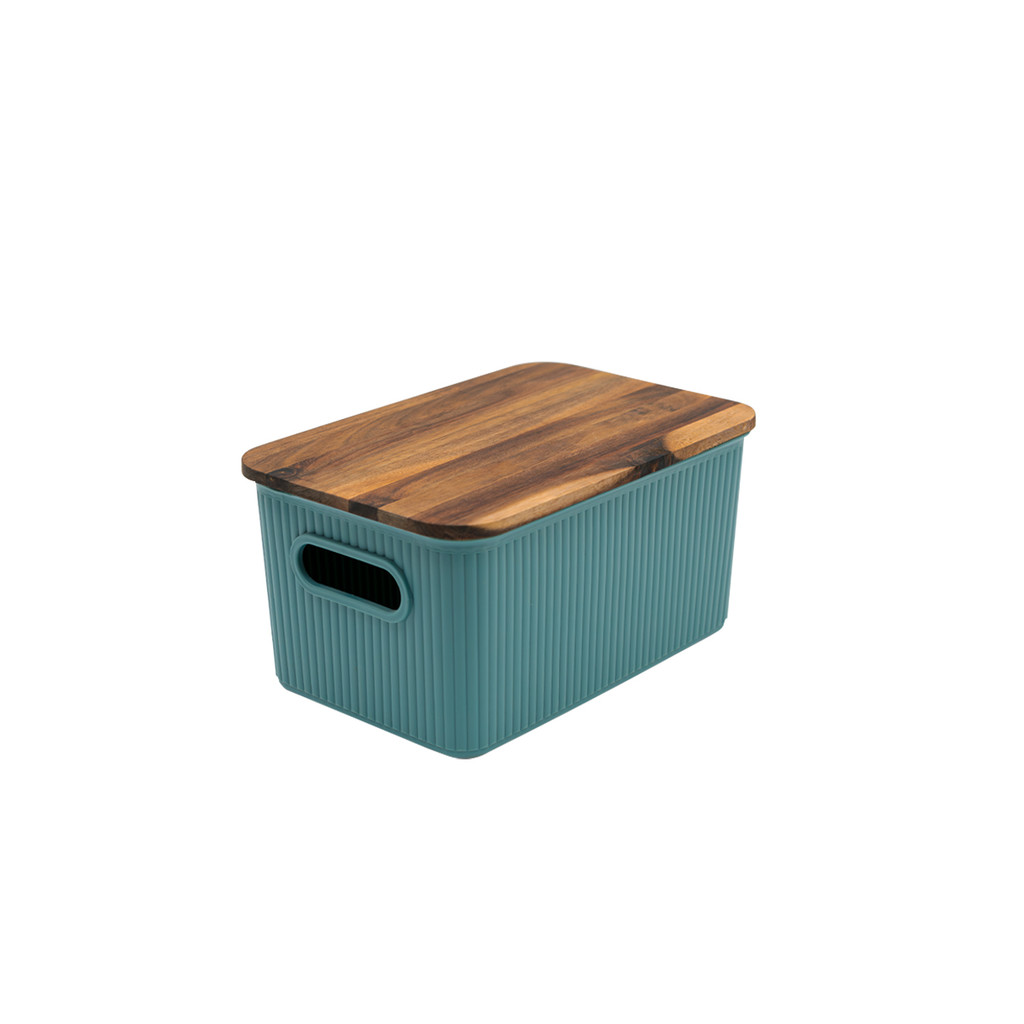 caixa organizadora 6L de plástico com tampa de madeira- Oikos