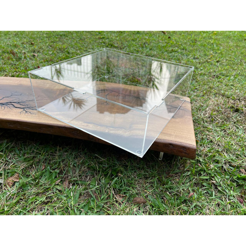 CAIXA EM ACRÍLICO CAST TRANSPARENTE (3mm) TAMANHO 33,5x22,5x5,5 COM TAMPA ARTICULÁVEL.