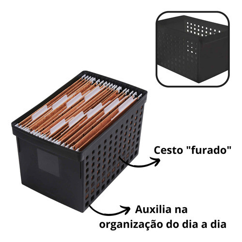 Caixa Organizadora Arquivo Morto Plastico Multiuso Preto pastas suspensas Ordene