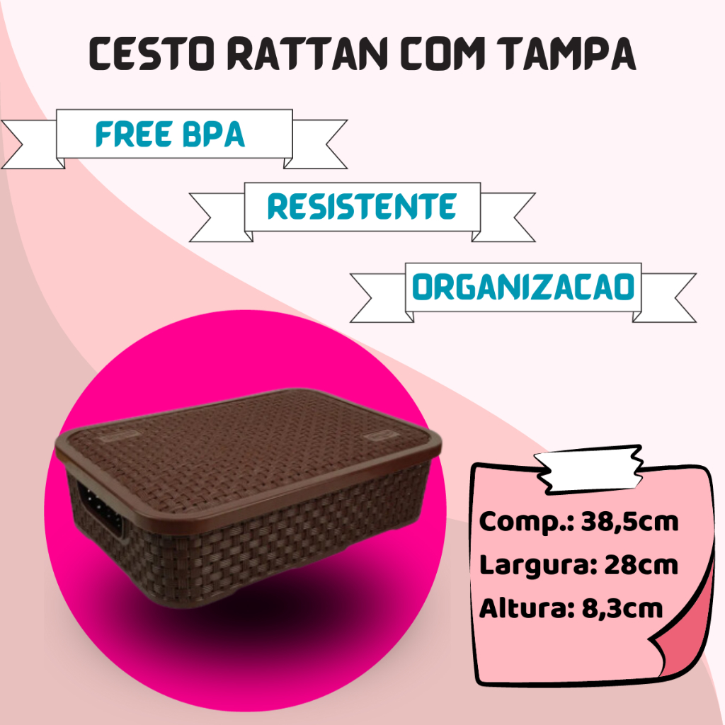 CESTO CAIXA ORGANIZADORA NITRON PRODUTO ORIGINAL A PRONTA ENTREGA As Caixas Rattan, facilitam a organização deixando tudo em seu devido lugar e decorando ao mesmo tempo!As caixas nas organizações são funcionais, pois você determina o local que cada objeto será guardado.Sua tampa protege os objetos da poeira que acumula no dia a dia.A caixa possui uma alça.BPA Free (Livre de BPA - O BPA é uma substância química que faz mal à saúde)Design alegre que se adequa em todos os momentosMaterial incrivelmente resistente CARACTERÍSTICA DO PRODUTO: Material: Polipropileno Marca: Nitron Tamanho: G Tampa: Baixo DIMENSÕES DO PRODUTO: Peso: 360 g Largura: 28 cm Comprimento: 38,5 cm Altura: 8,3 cm Capacidade: 7 Litros NITRON A Nitron atua no mercado de utilidades domésticas em plásticos há 35 anos.Com mais de 300 itens em linha, hoje a Nitron é uma das principais fabricantes de utilidades domésticas em plástico do Brasil, resultado de uma atuação voltada principalmente na qualidade de seus produtos, investimentos constantes e modernização profissional, respeitando as principais necessidades e desejos de seus consumidores.