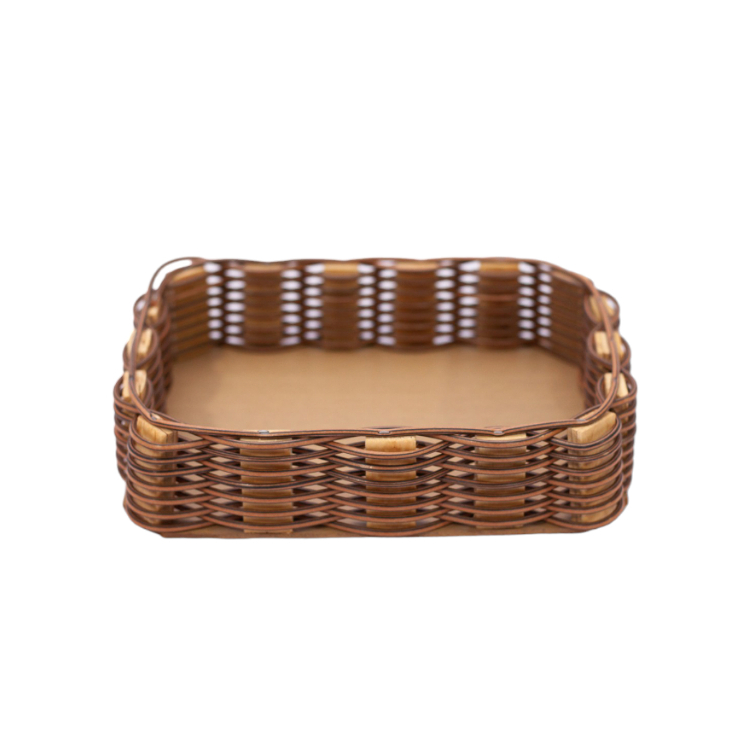 Essa bandeja é feita com armação de madeira e trançada com a Fibra Sintética. Pra quem não conhece, a fibra sintética é um tipo de plástico que vem substituindo fibras naturais como o Vime e o Junco. Por ser industrializada ela garante maior durabilidade e pode ser feita em diferentes cores. Medidas: P - 19x14x06 M - 24x18x06 G - 29x22x06 OBS: Por ser um produto artesanal as medidas podem variar em até 2 cm.