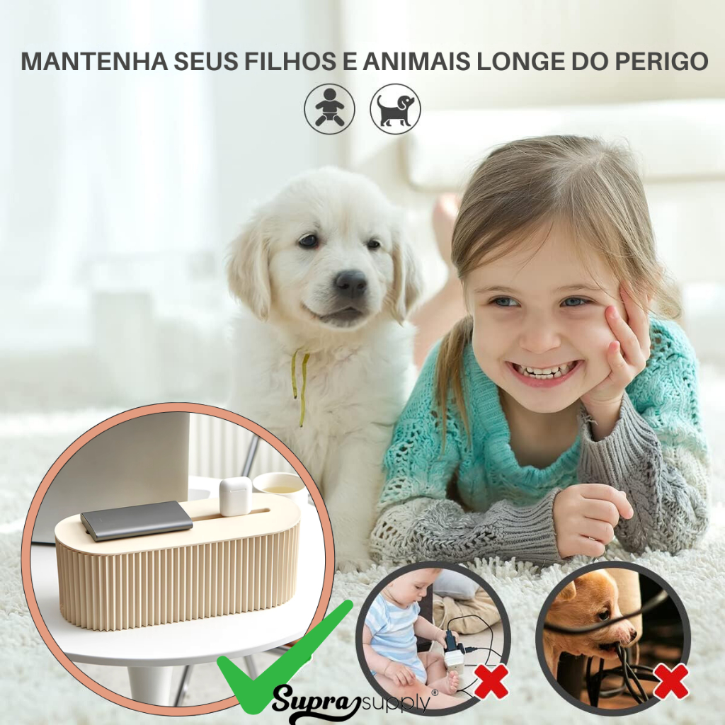 Caixa Organizadora de Fios e Cabos Para Esconder Fontes Carregadores Filtros de Linha Mantém Ambiente Limpo e Organizado