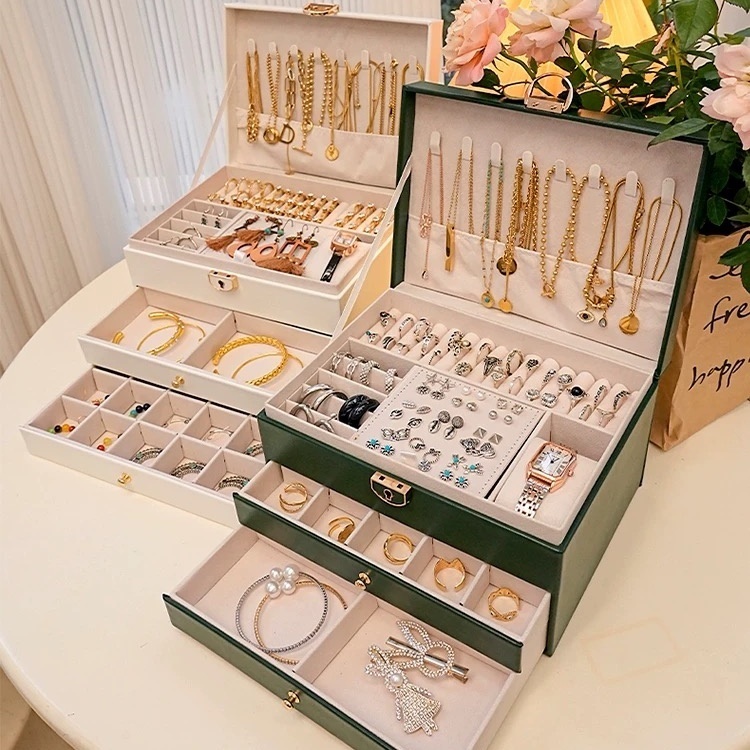 Caixa Organizadora de Joias Alemã Porta Joias Luxuoso com Divisórias Colares Brincos Pulseiras -Q19