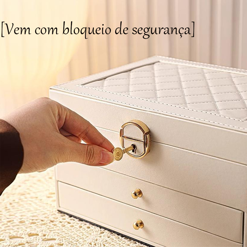 Caixa Organizadora De Jóias Feminina Em Couro Com 3 Camadas/Anéis/Relógio