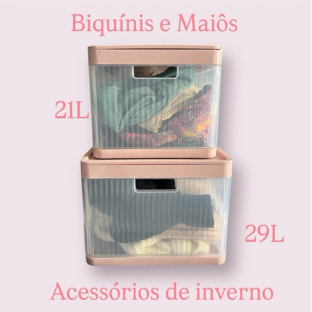 Feitas em polipropileno, possuem um sistema de encaixe inovador que facilita o empilhamento e o uso diário. Isso permite a criação de várias camadas sem deformar o produto, adaptando-se perfeitamente às suas necessidades. As caixas são dobráveis, o que facilita o armazenamento quando não estão em uso, ocupando pouco espaço, com apenas 5cm de altura, e tornando o transporte extremamente prático. Inclui tampas resistentes que garantem a proteção dos seus itens, mantendo-os organizados e seguros. As alças foram projetadas para proporcionar maior facilidade no transporte, ajudando você a manter sua casa limpa e arrumada. Para uma organização personalizada, conta com divisórias removíveis, permitindo uma disposição setorizada dentro das caixas. Ideal para armazenar roupas, livros, brinquedos e muito mais, esta funcionalidade torna a sua organização ainda mais eficiente. As caixas possuem laterais translúcidas que facilitam a visualização dos itens, ajudando você a economizar tempo e aumentar a produtividade. *acompanha 02 divisórias. Especificações: Capacidade: 21 litros Altura: 207mm Largura: 250mm Comprimento: 400mm