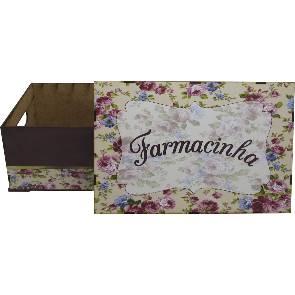 Caixa Organizadora Farmacinha MDF Decoração Floral Porta Remédios Quarto Banheiro