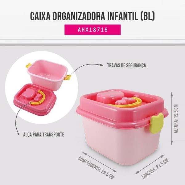 Guarde roupas, brinquedos e acessórios do seu pequeno neste lindo organizador da Jacki Design. Possui alça para transporte, travas de segurança e um design super fofo! Medidas: Comprimento: 29,5cm x Largura: 23cm x Altura: 19,5cm Material: Polipropileno POR QUE VOCÊ NÃO PODE DEIXAR DE COMPRAR NOSSO PRODUTO? Adquirindo diretamente conosco, você vai ter a certeza de estar comprando um produto original da marca Jacki Design. E isso é muito importante, para não se frustrar caso adquira um produto falsificado ou de péssima qualidade. Os produtos são de ótima qualidade, e com detalhes pensando em facilitar e organizar o seu dia-a-dia. Embalamos com todo cuidado e enviamos rapidamente pra você! E estaremos sempre a disposição para te atender da melhor forma possível. 3 meses de garantia