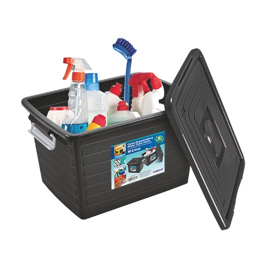 Caixa Organizadora Container Preta com Trava 30 Litros A melhor opção para organizar os seus itens! Conheça a Caixa Organizadora Container Preta com Tampa e Trava 30 Litros e mantenha sua casa ou trabalho mais organizado e de forma simples. Você pode guardar desde pequenos objetos como: acessórios de beleza, esmaltes e canetas, até objetos maiores: livros e brinquedos, que podem ser transportados ou guardados com muito mais praticidade e segurança devido às travas Dimensões: 44cm comprimento X 35 cm largura X 27 cm altura Arqplast