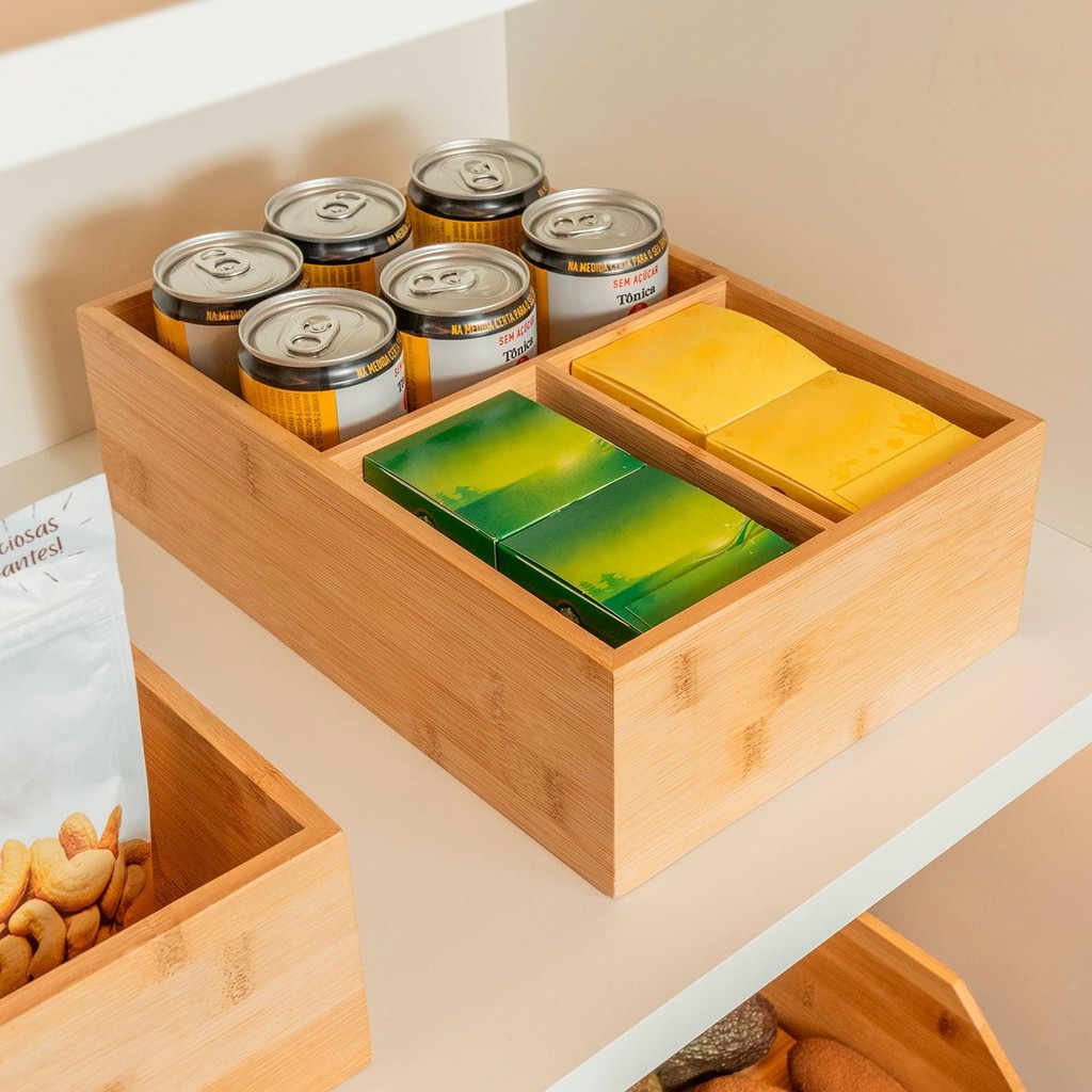 O Organizador Modular garante organização e cuidado para o seu dia a dia. Possui 3 compartimentos para facilitar a divisão dos itens, para uma rotina com mais tranquilidade e bem-estar. O bambu promove a sustentabilidade de um material 100% renovável, e traz sofisticação para decorar a sua casa.Seu design modular possibilita diversas composições. Possui versatilidade para organizar toda a casa, desde a cozinha aos armários do quarto.Eleve o nível da organização com a Linha Keep e guarde o que há de melhor em cada momento. INFORMAÇÕES TÉCNICAS Dimensões: LxAxP: 20x9x30 cm. Material: Bambu CUIDADOS Utilize uma esponja macia e sabão neutro para lavar o produto. Enxágue com água abundante, evitando deixá-lo submerso na água. Após a lavagem, seque imediatamente para evitar o aparecimento de fungos e bactérias. Guarde o produto em local seco e arejado. Caso o produto apresente mofo, limpe-o com um pano umedecido em vinagre branco. CONTEÚDO DA EMBALAGEM 1 caixa organizadora com 3 divisórias SOBRE NÓS Somos apaixonados pelo que fazemos e utilizamos o design como meio de fazer você se sentir em casa onde estiver. Criamos produtos com carinho e cuidado para atender as suas necessidades diárias, levando bem-estar, aconchego e conforto para seu lar. Somos minimalistas e funcionais pois queremos que você tenha um estilo de vida mais leve e organizado, para atingir o máximo do seu potencial. Prazer, somos Ou.