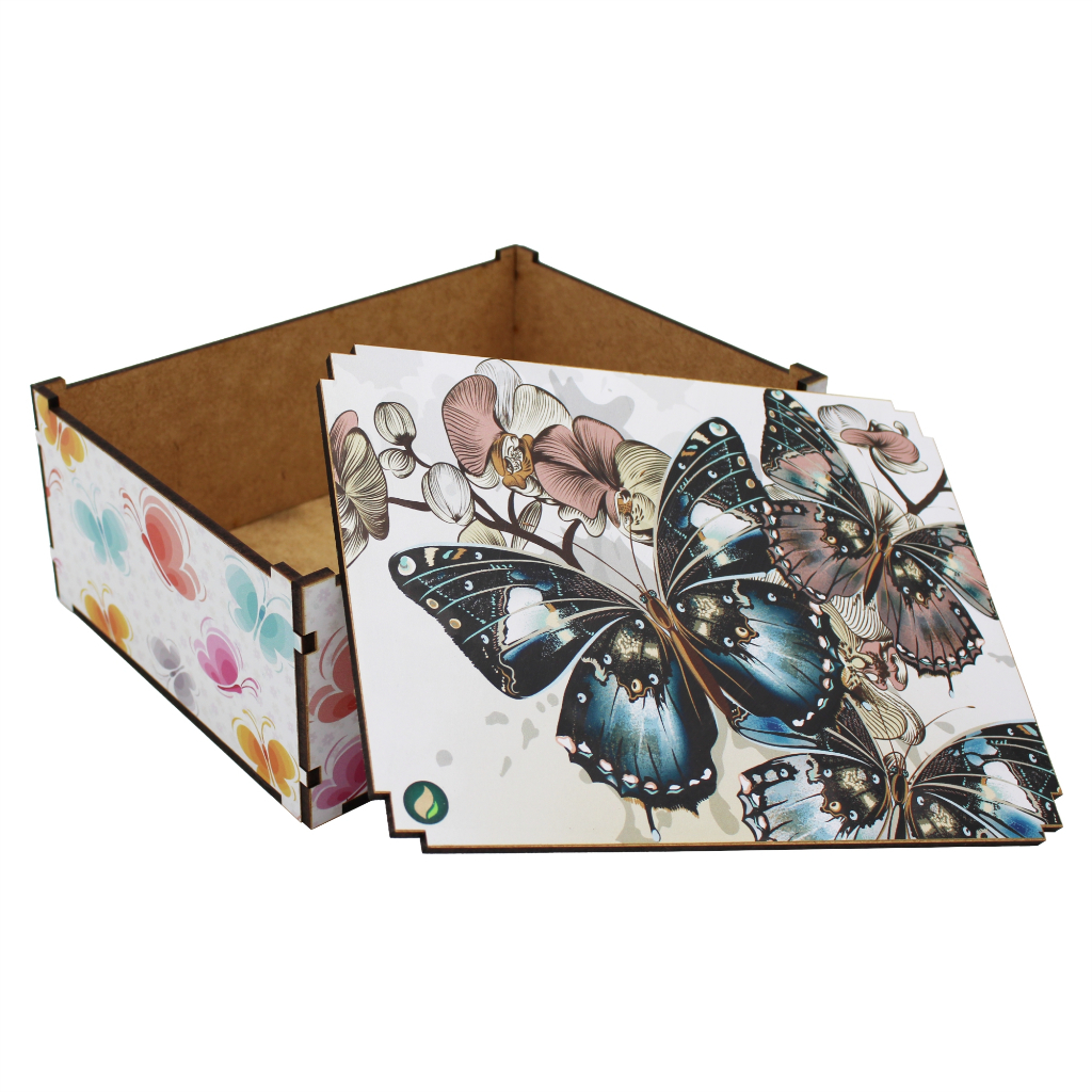 Caixa Organizadora Presente Decoração Borboletas 23x17x9 cm Mdf