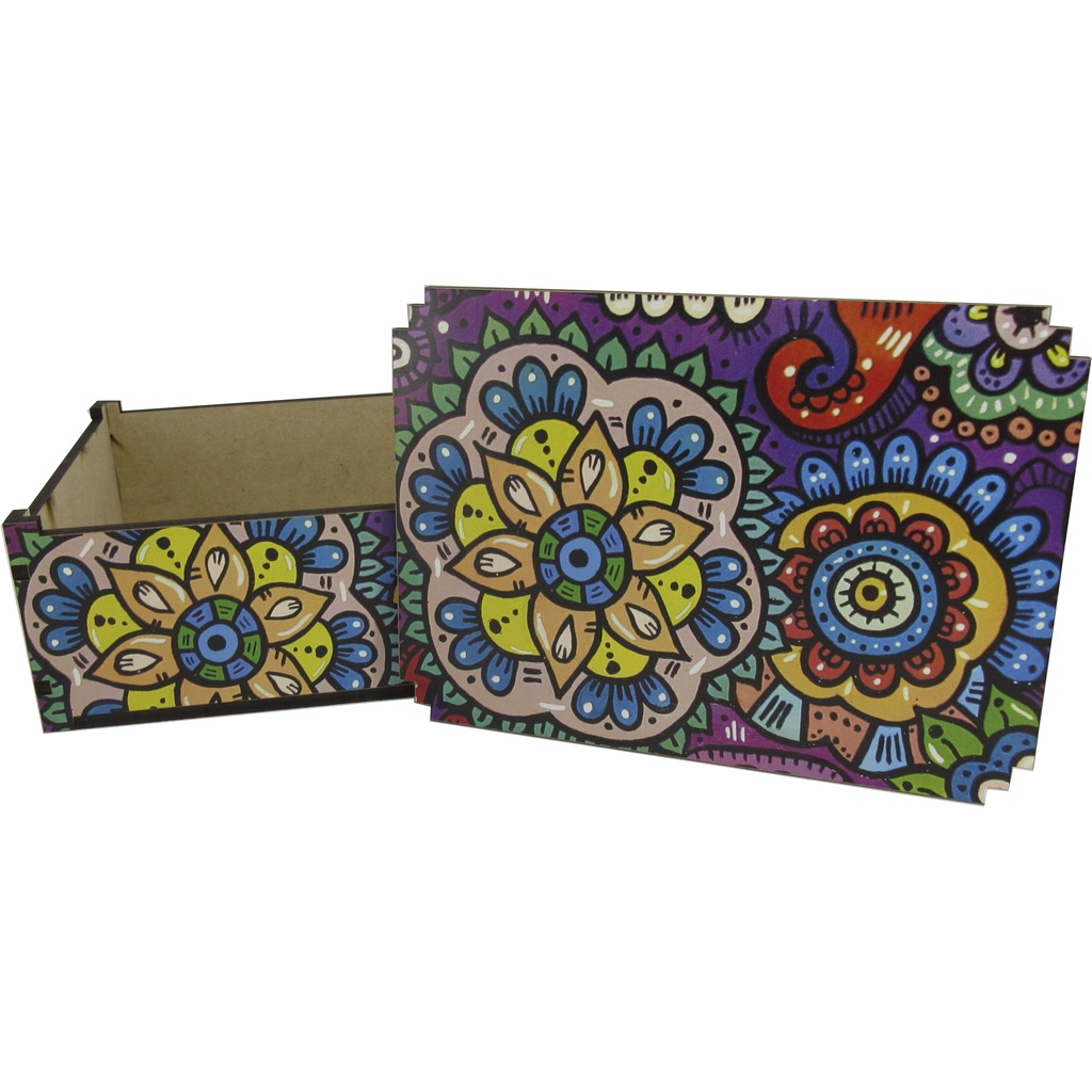 Caixa Organizadora Presente Decoração Mandala Colorida 23x17x9 cm Mdf