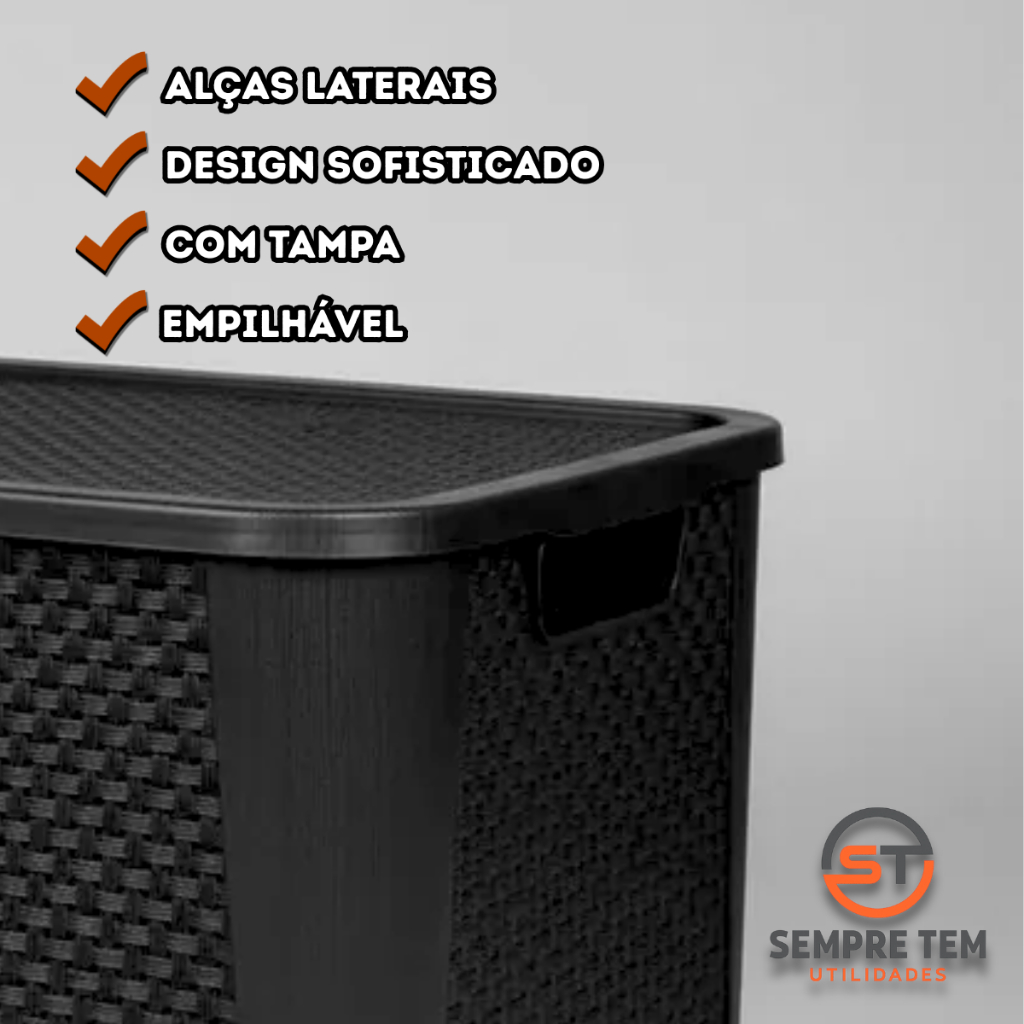 Caixa Organizadora Rattan 42L Empilhável - Organize com Estilo e Praticidade! Diga adeus à bagunça e olá para a organização impecável com a nossa Caixa Organizadora Rattan de 42 litros! Com design elegante e textura rattan, esta caixa é a solução perfeita para manter seus espaços arrumados e com um toque de sofisticação. Vantagens: * Ampla capacidade (42L): Ideal para guardar roupas, brinquedos, livros, utensílios domésticos e muito mais; * Design rattan: Textura charmosa que combina com qualquer decoração, adicionando um toque de estilo aos seus ambientes; * Empilhável: Otimize seu espaço verticalmente, empilhando várias caixas com segurança e praticidade; * Material resistente e durável: Fabricada em plástico de alta qualidade, garante longa vida útil e suporta o uso diário; * Fácil de limpar: Material lavável que facilita a higienização, mantendo sua caixa sempre impecável; * Multiuso: Perfeita para organizar diversos ambientes, como quartos, salas, banheiros, lavanderias e despensas; * Leve e prática: Fácil de transportar e manusear, tornando a organização uma tarefa simples e rápida; * Cores versáteis: Disponível em diversas cores para combinar com seu estilo e decoração. Ideal para: * Organizar armários e prateleiras; * Guardar brinquedos e materiais escolares; * Organizar roupas e acessórios; * Armazenar utensílios domésticos e produtos de limpeza; * Decorar e organizar ambientes com estilo. Transforme a organização da sua casa com a Caixa Organizadora Rattan 42L Empilhável! DIMENSÃO DO PRODUTO: - Comprimento: 48 cm - Largura: 37 cm - Altura: 28 cm RECOMENDAÇÕES: - Em caso de sujeira e pó, pegue um pano macio, seco ou úmido e, faça a limpeza de sua caixa; - A sua textura é ideal para que o que for armazenado não crie MOFO E BOLOR; - Perfeito para organizar utensílios em geral, brinquedos, roupas, entre outros! Atenção: Não usar esponja de aço na limpeza! SEMPRETEM UTILIDADES: A "SEMPRETEM UTILIDADES", pensando em facilitar e otimizar o tempo dos nossos clientes, traz uma variedade de produtos, que possam atender às suas necessidades e expectativas com Qualidade, Praticidade, Preço Justo, Atendimento Eficiente e Entrega Agilizada!
