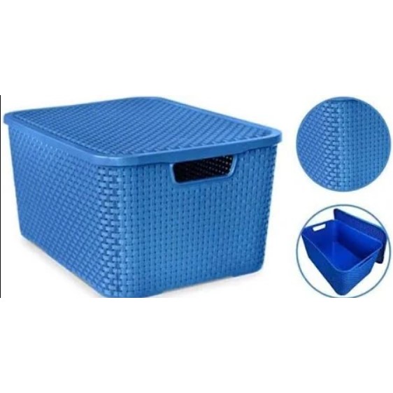Caixa Organizadora Rattan 7 Litros Multiuso Com Tampa Azul TOY25585