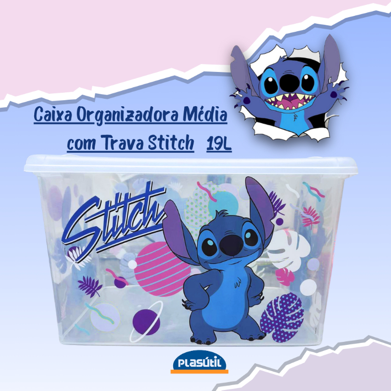 Caixa Organizadora Stitch 19 Litros (Média) Plasútil