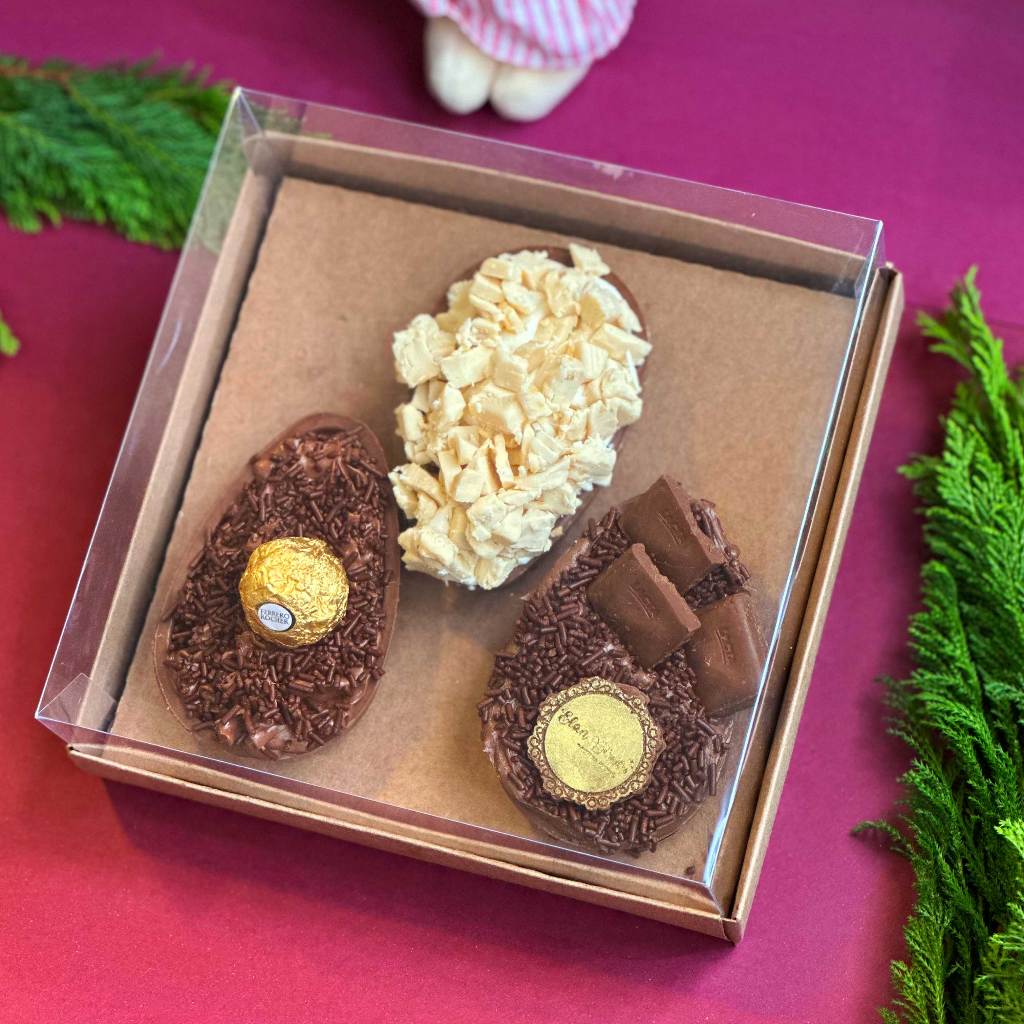 Caixa Ovo de Colher 150g Trio– Ovos de Páscoa Gourmet 100g e 150g com Suporte para Colher