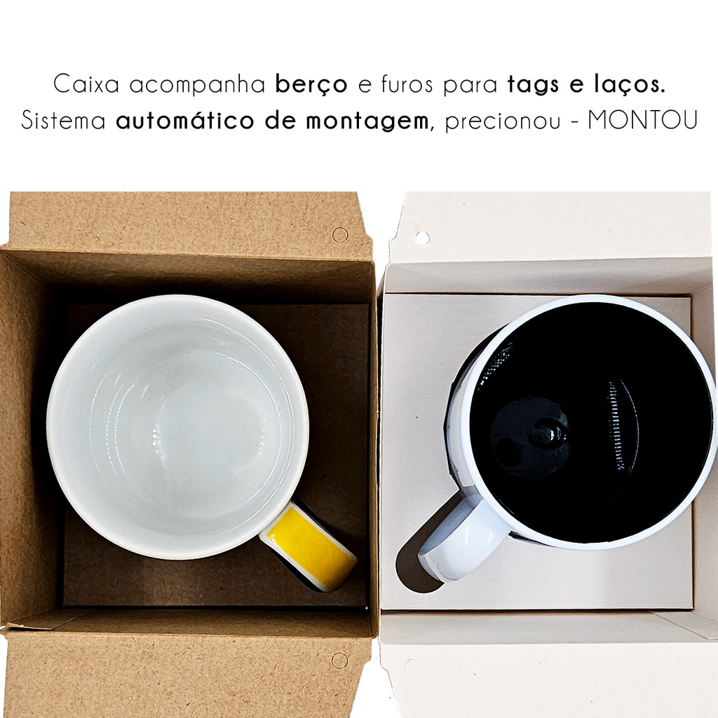 Caixa para caneca de porcelana de 325ml c/ BERÇO - papel cartão branco sublimável, montagem em 3seg.
