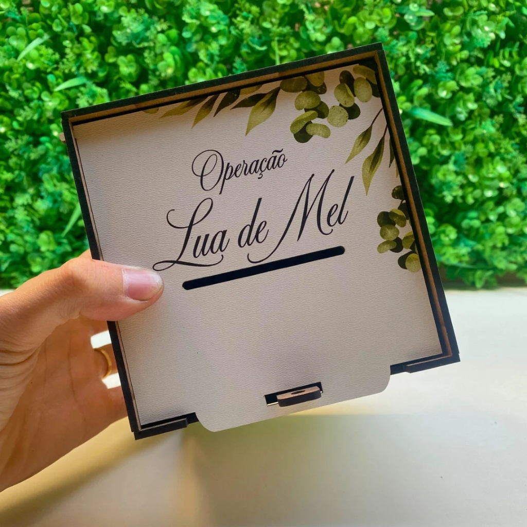 Um detalhe moderno e sofisticado para o momento mais esperado da festa! Nossa Caixa Pix dos Noivos foi pensada para deixar o corte da gravata mais organizado e estiloso. Com design delicado em verde oliva e espaço especial para fixar o QR Code, ela transforma tradição em tendência! Com a frase “Operação Lua de Mel” na base, a proposta é clara: ajudar o casal a começar essa nova fase com muito amor (e um empurrãozinho financeiro)! ⸻ 📦 Informações do Produto: • Material: MDF branco • Tamanho: 13x13 cm • Cor: Verde oliva com folhagens • Frase frontal: “Pix dos Noivos” • Frase inferior: “Operação Lua de Mel” • Com espaço para colar QR Code • Produto não personalizável • Disponível em 4 estampas diferentes (escolha na compra) ⸻ Ideal para quem busca praticidade, bom gosto e um toque moderno no grande dia. Escolha sua estampa e garanta já a sua! PRODUTO ENVIADO DESMONTADO PARA ECONOMIA DO FRENTE