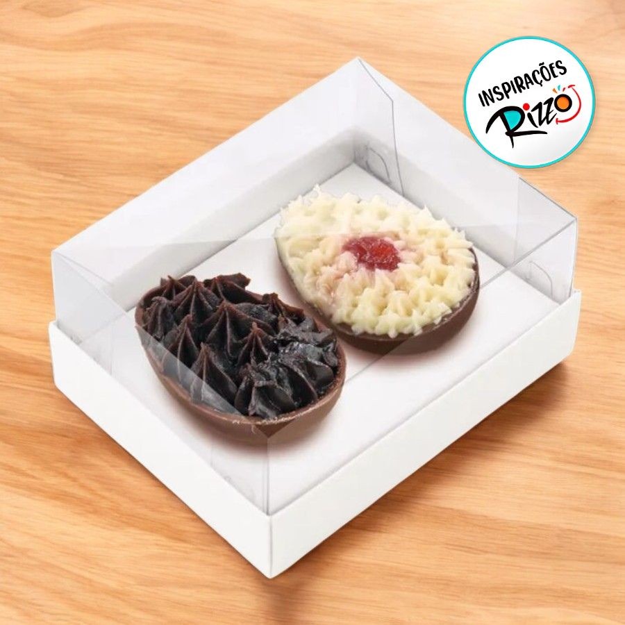 Caixa Para Dois Meio Ovos De 50g Páscoa - Branco - 10,5x8x5cm - 6 unidades - Cromus - Rizzo