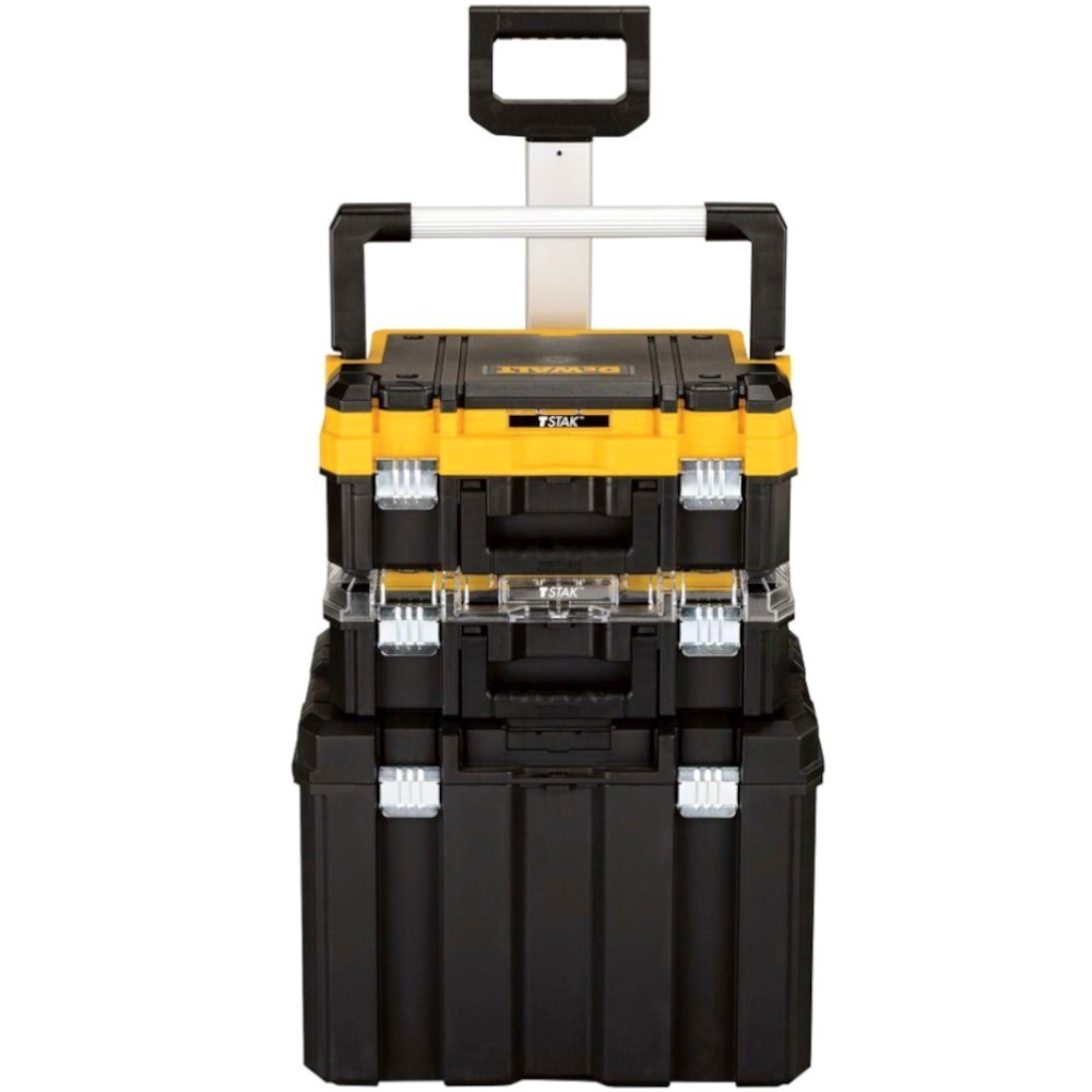Produto: Caixa para ferramentas torre modular móvel - DWST60404 Marca: Dewalt Descrição: A Caixa para ferramentas torre modular móvel DWST60404 da Dewalt podem ser empilhadas entre si e com outros módulos TSTAK através de travas laterais, permitindo um transporte fácil e seguro. A DWST60404 possui sistema de armazenamento TSTAK de 3 peças incluindo: alça longa com parte superior organizadora, organizador de tampa transparente e uma unidade de armazenamento móvel. Características: - Organizador de tampa transparente com 2 copos grandes e 5 pequenos removíveis para armazenar peças pequenas e acessórios; - Caixa de ferramentas com alça longa de metal-plástico e parte superior organizadora para peças pequenas; - Travas metálicas antiferrugem; - Dobradiças metálicas para serviços pesados; - Alça bilateral para transporte ergonômico. Especificações: Cor: Preto/Amarelo Com rodas Material da trava: Metal Medidas: 44 x 33.3 x 18.3 cm / Capacidade: 30 kg Medidas: 44 x 14.5 x 33.2 cm / Capacidade: 20 kg Medidas: 44 x 33.3 x 74cm / Capacidade: 50 kg Rodas de 7”. Peso: 9.70 Kg