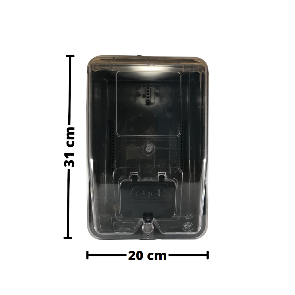 Caixa para Medidor Monofásico Padrão Enel A Caixa para Medidor Monofásico Padrão Enel, a solução definitiva para proteger e abrigar seu medidor elétrico com estilo, eficiência e um toque adicional de proteção contra os raios UV. Projetada para atender aos rigorosos padrões da Enel, nossa caixa oferece segurança, durabilidade e resistência à exposição solar. Principais Características: Conformidade Garantida: Nossa caixa é projetada especificamente para atender aos requisitos de instalação e segurança estipulados pela Enel. Tenha a tranquilidade de estar em total conformidade com as normas. Proteção UV Avançada: Com a adição de proteção contra raios ultravioleta, nossa caixa mantém sua integridade estética e estrutural mesmo sob exposição solar intensa. Isso ajuda a evitar o desgaste prematuro causado pelo sol. Proteção contra Intempéries: Com materiais de alta qualidade e design robusto, sua caixa de medidor estará protegida contra intempéries, impactos e fatores externos que poderiam comprometer a integridade do medidor elétrico. Instalação Simples: A caixa é projetada para uma instalação fácil e rápida. Instruções detalhadas e ferragens necessárias estão incluídas, tornando o processo acessível mesmo para aqueles com pouca experiência em instalações elétricas. Durabilidade Excepcional: Construída com materiais resistentes e de longa duração, nossa caixa para medidor monofásico suporta as condições mais adversas, garantindo uma vida útil prolongada e proteção contínua. Estética Moderna: Além da funcionalidade superior, a caixa possui um design moderno que se adapta perfeitamente a qualquer ambiente. Sua aparência discreta complementa a estética do local de instalação. Segurança em Primeiro Lugar: A caixa é projetada não apenas para proteger o medidor elétrico, mas também para garantir a segurança dos técnicos e residentes durante a instalação e operação. Não comprometa a integridade do seu medidor elétrico. Invista na segurança, proteção UV e durabilidade da Caixa para Medidor Monofásico Padrão Enel. Conte com a qualidade e confiabilidade que apenas nossa marca pode oferecer. Conteúdo da Embalagem: 1 Caixa de proteção para Medidor Monofásico Padrão Enel Kit de fixação do medidor Nota: Verifique sempre as regulamentações específicas da Enel para garantir a compatibilidade com seu sistema elétrico. Modernize, proteja contra os raios UV e mantenha sua instalação elétrica com a Caixa para Medidor Monofásico Padrão Enel. Compre agora e garanta tranquilidade, segurança e durabilidade para você e sua residência. - Dimensões: 310x200x140; - Passagem de cabos pré-recortados; - Caixas em policarbonato na cor preta ou cinza (de acordo com a disponibilidade) e tampa transparente; - Antichamas. *Atenção! Parafuso lacre é instalado pela Enel.