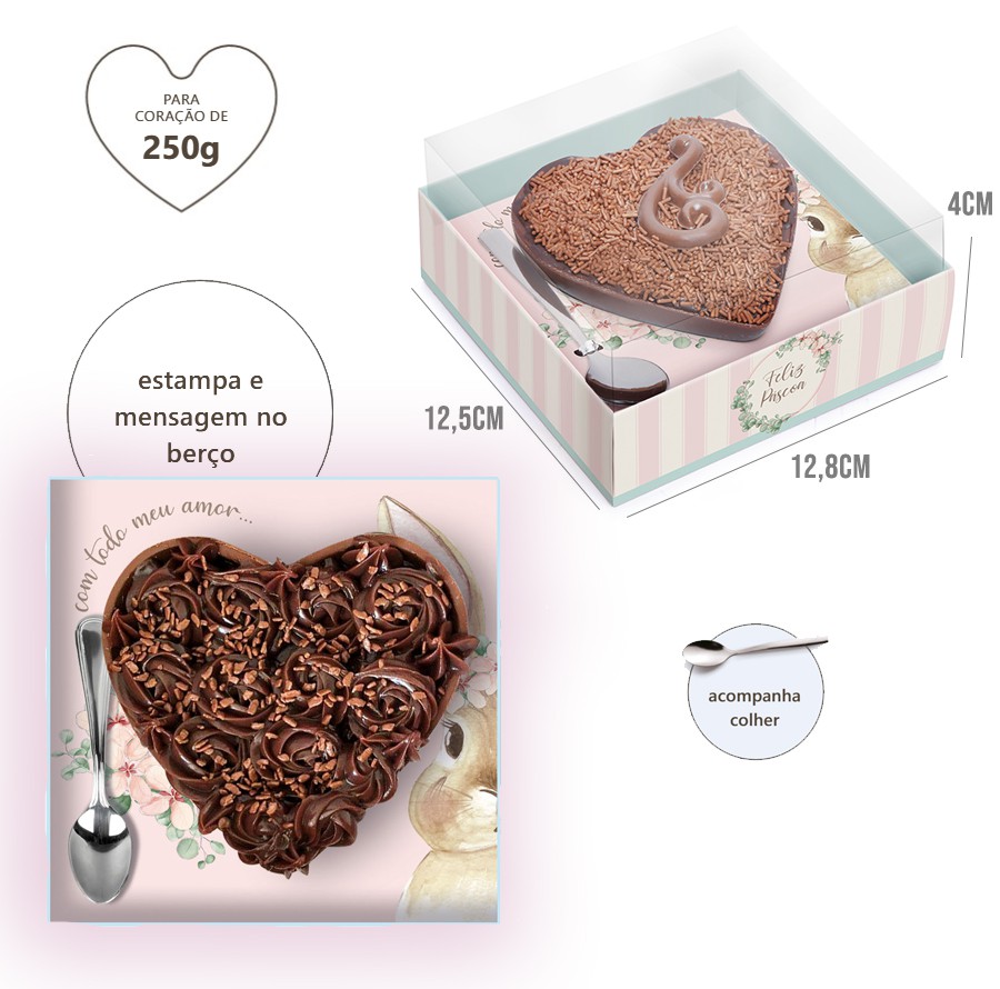 Caixa para Meio Coração de 250g - Coelha Bella - 06 unidades - Cromus Páscoa - Rizzo Embalagens