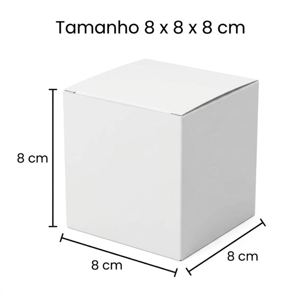 Caixa Para Vela, Doces , Presentes e muito mais. Descrição do Produto Caixa ideal para embalar velas, doces, presentes e pequenos produtos em geral. Produto resistente, prático e com ótimo acabamento, indicado para uso comercial, lembrancinhas, kits e embalagens para venda. Somos fabricantes e trabalhamos com matérias-primas de alta qualidade, garantindo melhor resistência, durabilidade e apresentação do produto. Especificações Cor: Branca Gramatura: 300 gramas Medidas: 8 cm (Altura) x 8 cm (Comprimento) x 8 cm (Largura / Profundidade) Quantidade: 50 unidades Informações Importantes As caixas são enviadas coladas, porém não montadas, para facilitar o transporte e evitar danos durante o envio. Produto direto de fábrica.