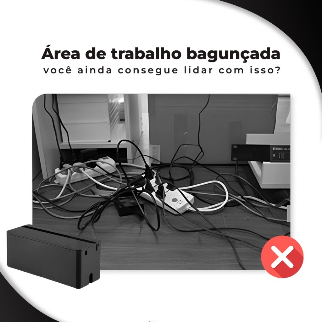 Caixa Para Proteger E Organizar suas Tomadas, Fios, Cabos, Fontes. Pronta Entrega, Envio Imediato. Organize seu emaranhado de fios e cabos! Deixando seu Setup, Escritório, Sala de Home Theater ou em qualquer outro ambiente mais leve e organizado. Além de esconder/organizar a bagunça de fios, evita também o contato de Bebês e Animais de estimação com os fios e tomadas Fabricadas em plástico ABS, são resistente a altas temperaturas e propagação de fogo. Suas aberturas laterais para passagem dos fios, ajudam a circulação de ar e dissipação do calor. Com as caixas organizadoras da Supra Supply, seus Fios, Cabos, Fontes e Tomadas ficarão organizados, escondidos e seguros! Vantagens; Segurança Design Minimalista Material Ultra Resistente Sensação de ambiente Clean Protege os Bebês e os Animais de Estimação Composição Técnica; Material: Plástico Abs. Cor: Preta. Medidas: Comprimento 30,5cm / Profundidade 11cm / Altura: 12,4cm (Acompanha tira de arame para juntar os fios)