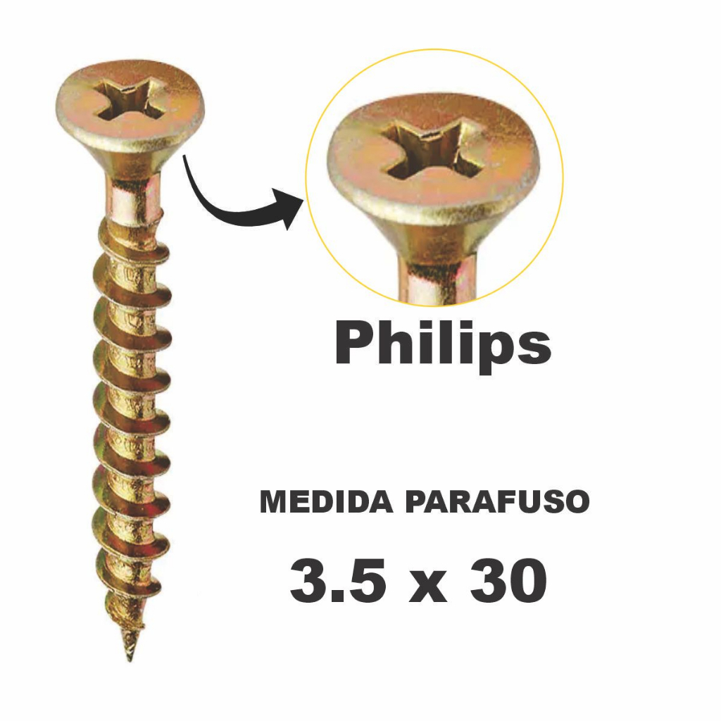 Caixa Parafuso 3,5 X 30 Chipboard 500 Unidades Para Madeira Cabeça Chata Philips Madeira MDF Moveis