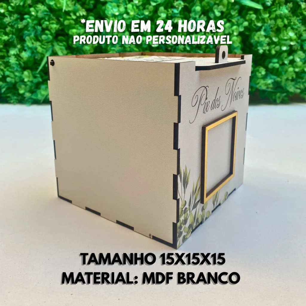 Vai ter corte da gravata? Vai ter Pix também! Essa caixinha charmosa é perfeita para arrecadar de forma prática e elegante durante a festa. Com espaço para colar o QR Code e a divertida frase “Operação Lua de Mel”, ela garante boas risadas e boas contribuições! São 4 modelos lindos para escolher – todos prontos para uso! Produto não personalizado. A estampa será enviada conforme a escolhida no pedido. ⸻ 📋 Detalhes do Produto: • Uso: Corte da gravata / arrecadação Pix • Tamanho: 13x13 cm • Material: MDF branco • Frases: “Pix dos Noivos” (frente) e “Operação Lua de Mel” (parte inferior) • Estilo: Verde oliva com folhagens • Acompanha: Espaço para QR Code • Não personalizável • 4 estampas diferentes à escolha