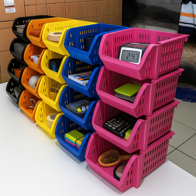 Caixa Plástica Expositora Empilhável Mini Cesto 10 Pçs