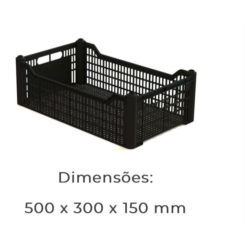 OBS: é uma caixa voltada para organização e não para pegar tanto peso ou seja é uma caixa FRÁGIL Organize, transporte e exponha seus produtos com mais praticidade e segurança com a Caixa Plástica Hortifruti 50x30x15cm. Ideal para supermercados, feiras, quitandas e produtores rurais, ela é fabricada em material resistente e possui design vazado que facilita a ventilação, ajudando na conservação de frutas, verduras e legumes. Versátil e durável, é um dos modelos mais utilizados no setor alimentício e agrícola. Produto à pronta entrega. Disponível somente na cor preta. Dimensões do Produto (em mm) Comprimento: 500 mm Largura: 300 mm Altura: 150 mm (Equivalente a 50 x 30 x 15 cm) Destaques Técnicos Fabricado em plástico (pp) Estrutura reforçada e resistente ao uso diário Design vazado que permite ventilação dos alimentos Fácil higienização Ideal para transporte e armazenamento de hortifruti Pode ser utilizada em feiras, supermercados, colheitas e laticínios Modelo empilhável Cor preta Observações Importantes Disponível somente na cor preta Verifique e selecione o kit desejado antes de finalizar a compra Imagens meramente ilustrativas