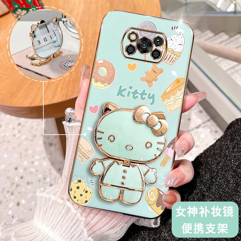 Caixa POCO X3 PRO X3 NFC Capa 2025 Novo design Hello Kitty Cat Com Espelho De Maquiagem Porta 3D Portátil E SoftCase