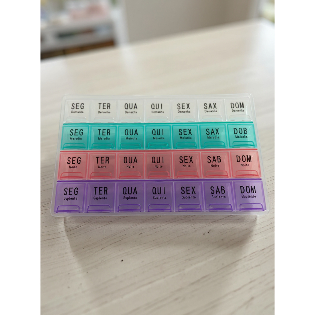 Caixa Porta Comprimido Organizador De Remédios Semanal e Mensal Porta Medicamento Remédio/capsulas 4x Dia
