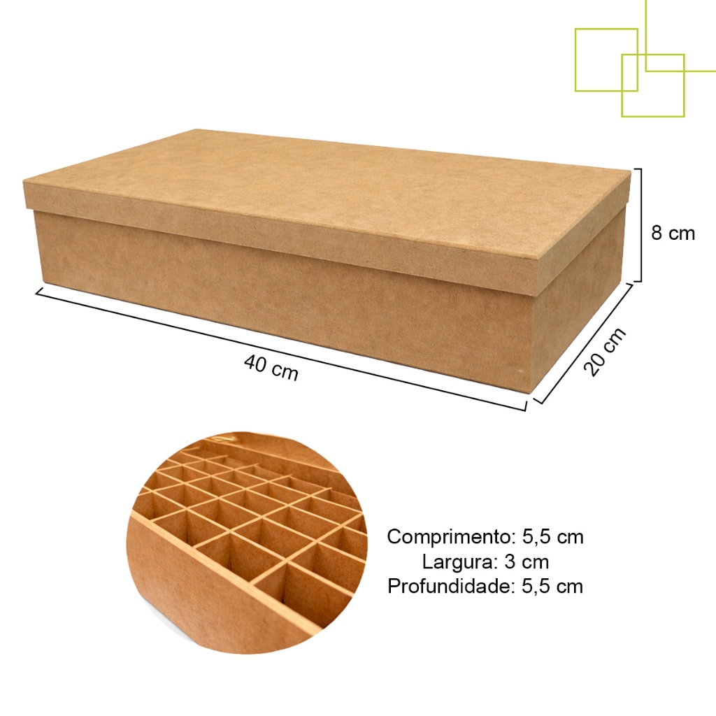 CAIXA ORGANIZADORA DE FIGURINHAS EM MDF COM DIVISÓRIAS A solução perfeita para manter suas figurinhas sempre organizadas, protegidas e fáceis de encontrar. Ideal para colecionadores, lojistas e amantes de álbuns, essa caixa oferece praticidade, durabilidade e excelente aproveitamento de espaço. Fabricada em MDF resistente, possui tampa de encaixe e divisórias internas que facilitam a separação por números, times, categorias ou como preferir. Mantém suas figurinhas protegidas contra amassados, sujeira e perdas. MEDIDAS EXTERNAS DA CAIXA: • Comprimento: 40 cm • Largura: 20 cm • Altura: 8 cm MEDIDAS INTERNAS DE CADA DIVISÓRIA: • Comprimento: 5,5 cm • Largura: 3 cm • Profundidade: 5,5 cm CARACTERÍSTICAS: • Produzida em MDF de alta qualidade • Tampa de encaixe firme • Com divisórias internas organizadoras • Resistente e durável • Produto versátil e funcional INDICAÇÃO DE USO: • Organização de figurinhas • Colecionadores • Revenda e separação por categorias • Armazenamento e proteção * PRODUTO EM MDF CRU. * POR SER FEITO DE FORMA ARTESANAL, O PRODUTO PODE TER ALTERAÇÃO NA COR E NA MEDIDA FINAL DO PRODUTO. * PRODUTO COM TAMPA. * PRODUTO NÃO ACOMPANHA FIGURINHAS - Como cuidar da sua peça em MDF cru? Proteja-o da umidade e calor excessivo; remova a poeira da superfície utilizando um pano macio e seco ou espanador de pó; evite utilizar produtos que contenham solventes, abrasivos ou amônia. - Tem alguma dúvida? Nossa equipe está pronta para atendê-lo, tirando qualquer dúvida e garantindo satisfação na sua compra. Aguardamos seu pedido! Boas compras! Expresso da Madeira