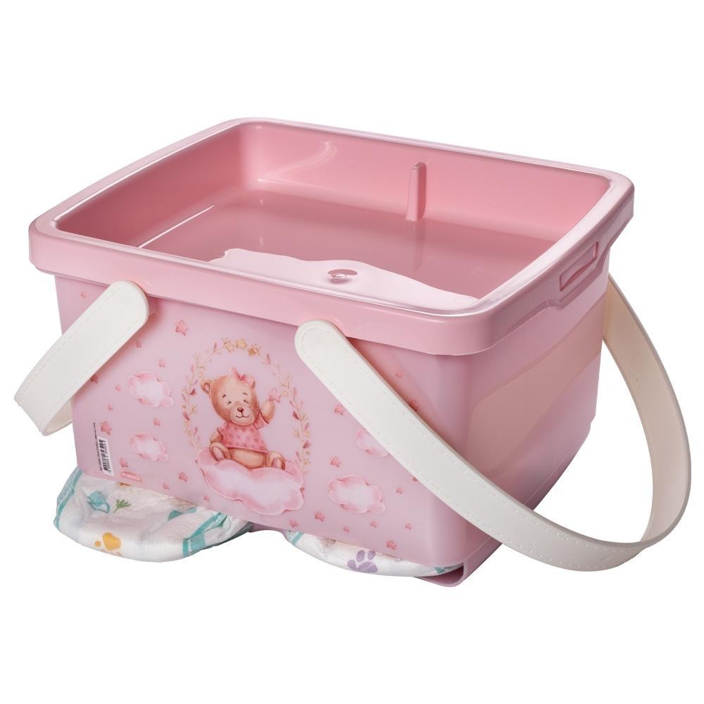Caixa Porta Fraldas Enxoval Trocador Ursa Rosa Plasútil Dimensao: (Comp x Larg x Alt): 25,8x22,0x15,3 cm - BPA FREE: livre de bisfenol-A e atóxico. Fabricado em plástico polipropileno (PP). - O porta-fraldas é prático para organizar bancadas e trocadores do (a) bebê. - Sua principal funcionalidade é possuir duas aberturas na parte debaixo, o que facilita a retirada das fraldas no momento da troca com apenas uma das mãos. - Possui duas alças que lembram textura em couro e facilitam o manuseio de um local para outro. Tampa com travas garantem fechamento seguro, mas de fácil abertura para reposição. - A tampa possui área útil e foi projetada para favorecer o encaixe de itens como o porta-lenços umedecidos e a maleta multiuso (outras peças da linha que coordenam com essa decoração) ou outros acessórios de sua preferência: solução que otimiza espaços e mantém a organização em dia. - Produto não acompanha fralda..
