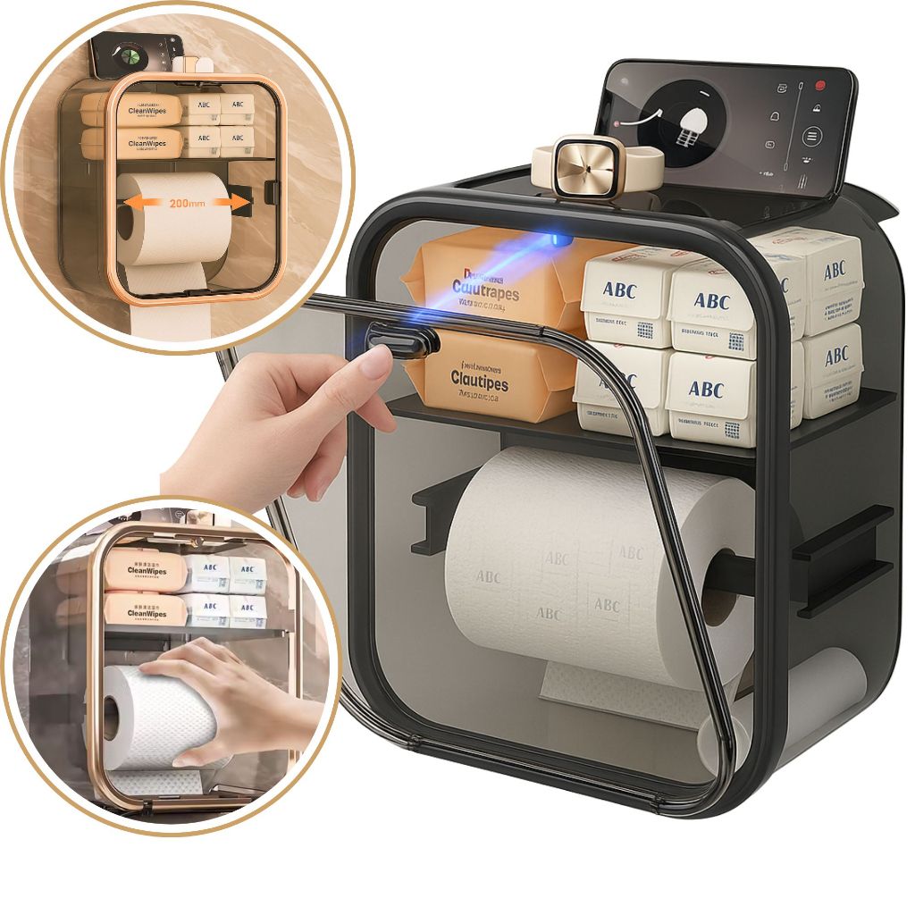 Praticidade, elegância e organização em um só produto. O dispenser multifuncional para banheiro é a solução para quem busca funcionalidade e sofisticação no dia a dia. Com design moderno e frente transparente, armazena papel higiênico e lenços umedecidos, mantendo tudo protegido contra respingos e fácil de acessar. O compartimento superior apoia celular, aromatizador ou pequenos objetos. A instalação é simples e sem furos, feita com adesivos de alta fixação. Destaques do produto: • Dispenser de parede para papel higiênico e lenços umedecidos • Frente transparente e design elegante • Fixação com adesivo de alta aderência (sem furar a parede) • Compartimento superior para celular/aromatizador • Ideal para banheiros, lavabos, clínicas e ambientes comerciais Medidas: 23 x 20 x 12,5 cm Mais organização, higiene e praticidade no seu dia a dia, com um toque de sofisticação. Palavras-chave: dispenser papel higiênico, porta lenço umedecido, dispenser banheiro parede, suporte papel higiênico adesivo, organizador de banheiro, instalação sem furos, frente transparente, dispenser multifuncional, suporte para celular no banheiro, adesivo de alta fixação.