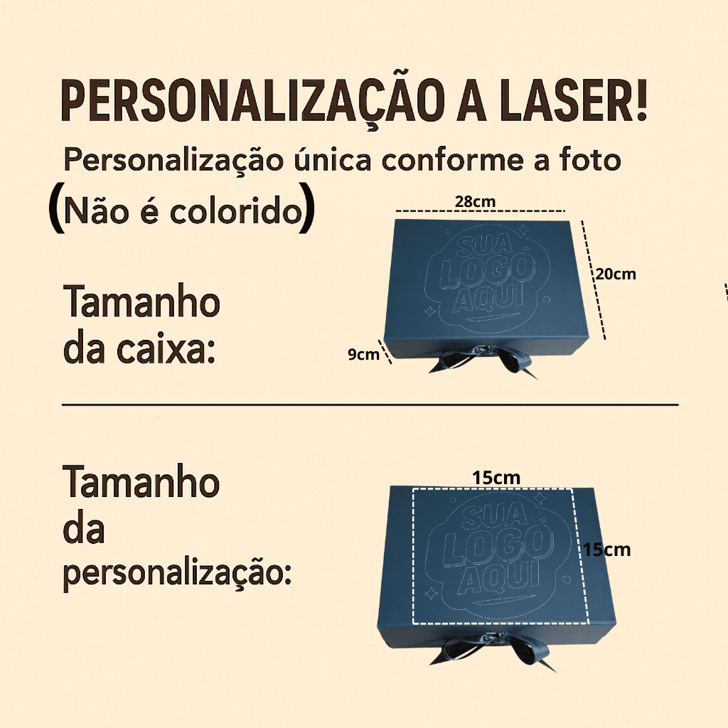 Caixa Premium Personalizada Fullmoment – Sofisticação e Exclusividade em Cada Detalhe Surpreenda com elegância! A Caixa Presente Premium Personalizada Fullmoment foi criada para quem busca encantar com requinte, bom gosto e acabamento impecável. Com design sofisticado e toque luxuoso, é a escolha ideal para transformar qualquer presente em uma verdadeira experiência. Especificações do Produto: • Dimensões (Externas): 28x20x9cm • Material: Papelão rígido de alta gramatura, garantindo firmeza, resistência e longa durabilidade • Fechamento: Sistema magnético discreto e prático, que une funcionalidade e elegância • Acabamento: Pintura premium uniforme, com textura suave e aparência refinada • Acompanha Laço em Cetim: Fita de cetim de alta qualidade, que adiciona um toque de charme e sofisticação • Personalização Fullmoment: Produzida com personalização exclusiva — podendo conter logotipo, nome ou arte sob medida, perfeita para empresas, eventos e presentes especiais Versatilidade de Uso: Mais do que uma embalagem, a Caixa Premium Fullmoment é um símbolo de bom gosto e cuidado em cada detalhe. • Presentes Memoráveis: Ideal para aniversários, casamentos, formaturas, Natal, Dia das Mães, Dia dos Pais, Dia dos Namorados e muito mais • Uso Corporativo: Excelente opção para brindes personalizados, kits empresariais e apresentações de produtos de luxo • Organização com Estilo: Perfeita para armazenar joias, lembranças e itens de valor com elegância e segurança Destaques Exclusivos: • Design Refinado: Combina modernidade e delicadeza, valorizando qualquer conteúdo • Sustentável e Reutilizável: Estrutura resistente que permite múltiplos usos, incentivando o consumo consciente • Pronta para Uso: Entregue pronta para presente, com envio rápido e embalamento seguro Busca de palavras de pesquisa: Caixa de presente rígida, caixa magnética, embalagem de luxo, caixa com fita de cetim, caixa para presente premium, caixa decorativa, embalagem para presentes especiais, caixa elegante, caixa para joias, caixa para brindes corporativos. Tamanho: P Dimensões Externas: 28,2x20,2x9,2cm Cor: Preta