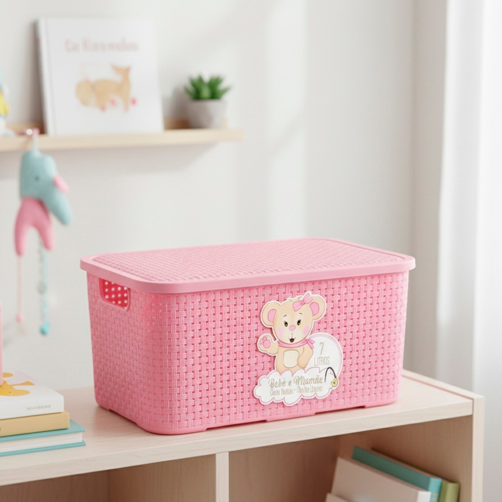 A Caixa Rattan 7 Litros Rosa Linha Bebê e Mamãe Monte Líbano é ideal para manter a organização dos ambientes de forma prática e charmosa. Com design delicado e acabamento que imita o trançado rattan, ela combina resistência, beleza e versatilidade, sendo perfeita para o quarto infantil ou qualquer espaço da casa. Com capacidade de 7 litros, essa caixa é ótima para guardar brinquedos, acessórios, produtos de higiene e diversos itens do dia a dia. Possui tampa com encaixe firme, que protege o conteúdo, e alças laterais que facilitam o transporte, garantindo praticidade no uso diário. A Caixa Rattan 7 Litros Rosa é a solução certa para quem busca unir funcionalidade e estilo. Um item que traz mais organização, durabilidade e confiança, com a qualidade de uma marca reconhecida no mercado. ESPECIFICAÇÕES: - Dimensões aproximadas da caixa (CLA): 27 x 17 x 14 cm - Capacidade: 7 litros - Com tampa - Material: Plástico - Marca: Monte Líbano - Referência: BM2081 ATENÇÃO: As cores e detalhes podem variar de acordo com o lote de fabricação em relação às imagens apresentadas.