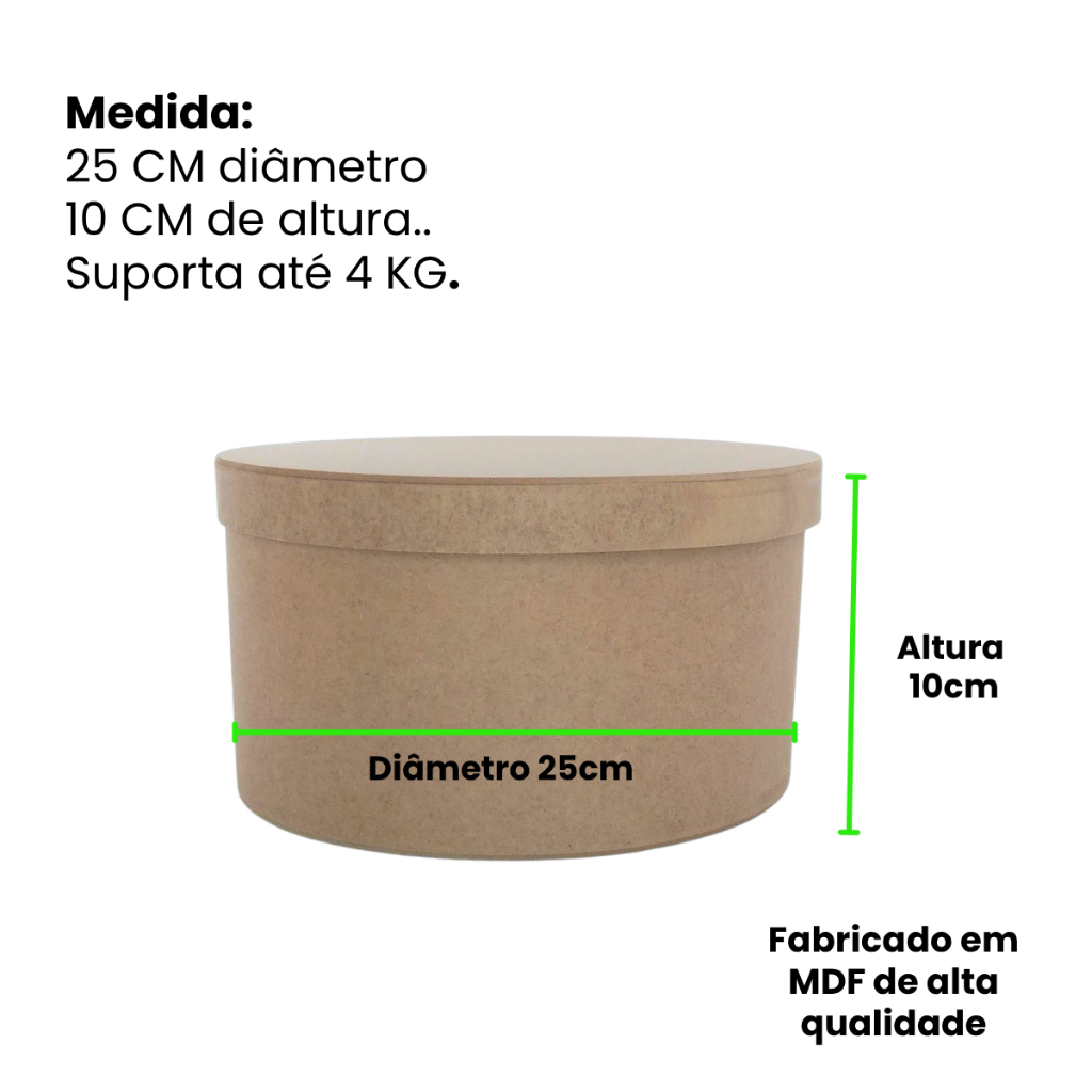 Caixa Redonda em Mdf Multiuso Decorativa 25x10 Convite Padrinhos Presentes Cesta Aniversario