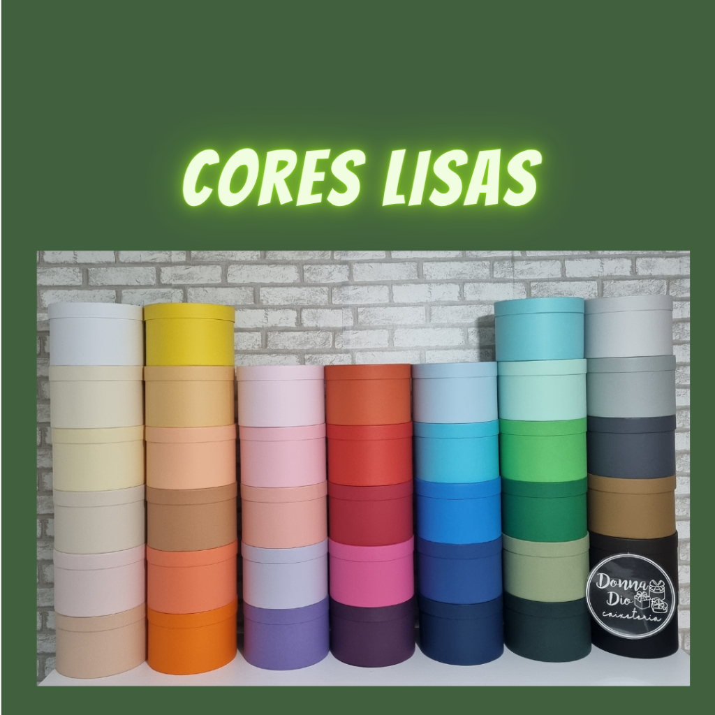 Caixa em papelão rígido medindo 20cm de diâmetro e 13cm de altura, revestida internamente com papel branco off-set e externamente com papel color plus. * Produto feito a mão, ideal para flores, presentes, lembrancinhas, cestas e box de luxo **Caso não tenha em estoque a cor que precisa, chame no chat