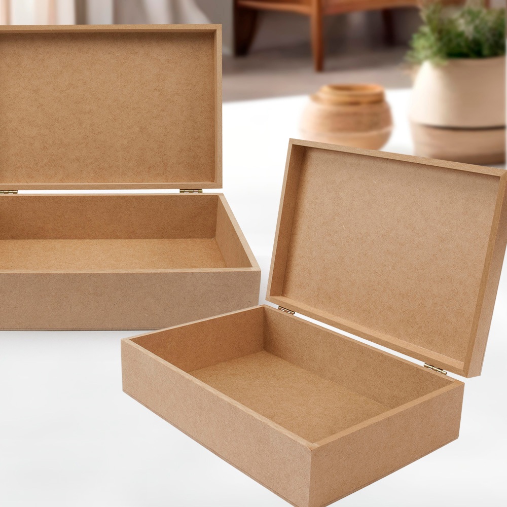 Caixa Retangular Lisa Com Dobradiça 30x20x7,5 - MDF Cru