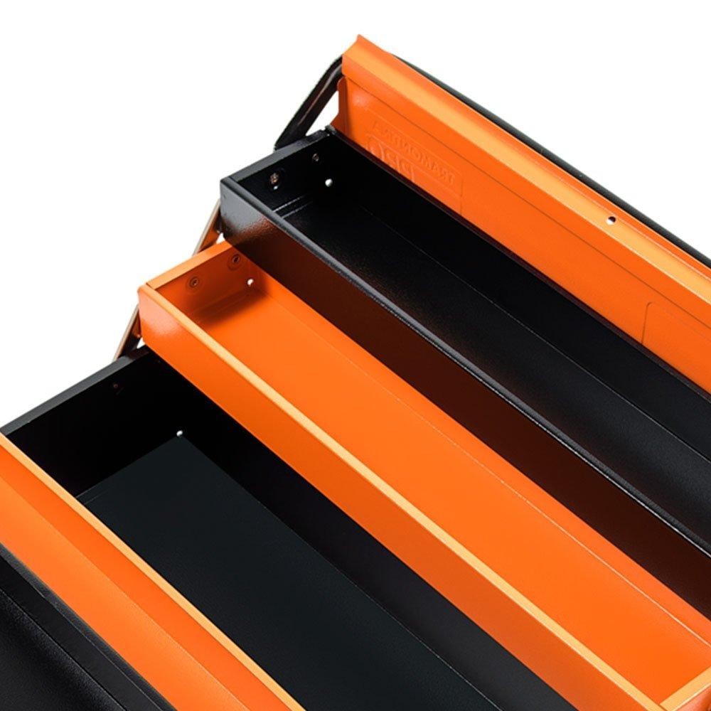 Loja do Mecânico - O que você precisa, nós temos Manter as ferramentas organizadas e facilitar o transporte das peças de um lado para o outro é a finalidade das caixas metálicas para ferramentas da Tramontina PRO. Porque não basta ter a ferramenta certa, é preciso ter ela sempre à mão. Caixa sanfonada 5 gavetas, Use óculos, luvas e outros equipamentos de proteção individual (EPIs) de acordo com a tarefa a ser executada. Mantenha as caixas/maletas trancadas durante sua movimentação ou transporte. Não apoie peças sobre as caixas/maletas para realizar qualquer trabalho. Não sobrecarregue as gavetas das caixas/maletas com peso excessivo. Armazene em local limpo e seco. Cinco gavetas. Pintura eletrostática. Marca Tramontina Pro estampada em uma das tampas superiores. As maletas, carros e bancadas são testados em ensaios de carga, para garantir sua resistência durante a utilização na oficina ou indústria. A pintura eletrostática forma uma película protetiva que garante um acabamento excelente e resistência à corrosão. Armazenamento e transporte de ferramentas manuais, peças e acessórios. Devido a sua construção é muito prática e de fácil movimentação. As ferramentas são produzidas e testadas conforme normas específicas. Ref.: Tramontina PRO-44952000 Marca.: TRAMONTINA PRO