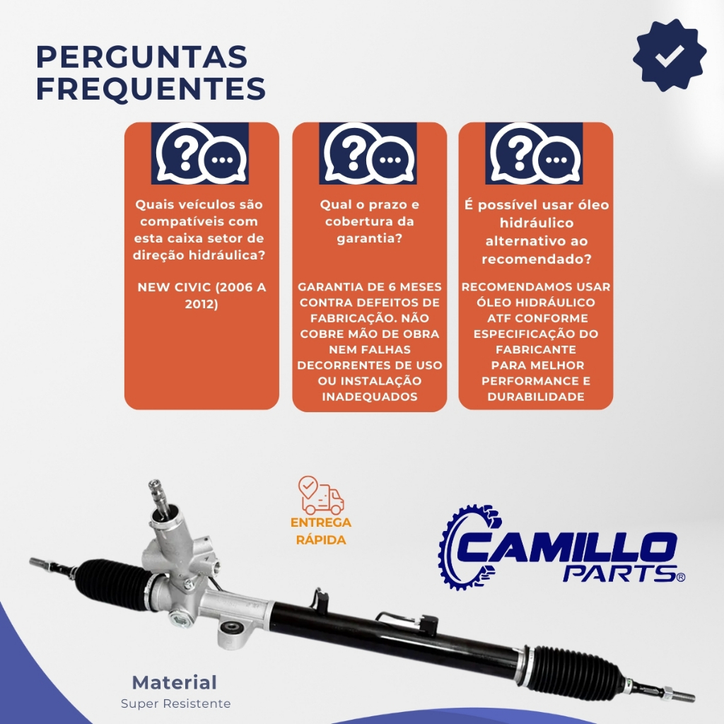 Bem vindo!! Você está em uma loja especializada em soluções automotivas seguras e confiáveis. Aqui, cada detalhe é pensado para cuidar do que move você: sua família, sua segurança e seus melhores momentos na estrada. 🚗 Caixa Setor de Direção Hidráulica Compatível com Honda New Civic 2006 a 2012 🏆 Sobre a Marca – Genuine Automotive A Genuine Automotive é renomada no mercado de autopeças, reconhecida pela excelência em componentes de direção. Oferecendo soluções inovadoras e duráveis, destaca-se pela confiabilidade, garantindo segurança e desempenho superior. Com tecnologia de ponta e rigorosos padrões de fabricação, atende às demandas dos consumidores mais exigentes. 👉 Escolher Genuine Automotive é optar por tranquilidade e confiança na estrada. 🔎 Referências Compatíveis: 32642 27005 C076G-3411010 T88A-3411010 46563 7163226010 53601 72085 53601-SNA-A02 53601-SNA-A12 53601-SNA-A51 53601-SNA-A61 53601SNJD04 📦 Informações do Produto: 🏷 Marca: Genuine Automotive ✨ Condição: Novo 🛡 Garantia: 6 meses 🔧 Acompanha: Axiais e coifas ⚙ Pinhão: Estriado ❌ Não acompanha: Terminais de direção 🚫 Não compatível com: Honda Civic Si ❗ Antes de realizar seu pedido, esclareça todas as suas dúvidas 🚙 Aplicação – Compatível com Honda: ✅ New Civic 📅 2006 | 2007 | 2008 | 2009 | 2010 | 2011 | 2012 ⭐ Benefícios: 🥇 Alta Qualidade: Fornecida pela Genuine Automotive, líder em componentes automotivos 🔩 Compatibilidade Perfeita: Projetada especificamente para New Civic 2006 a 2012 🎯 Direção Suave e Precisa: Melhora a resposta da direção, proporcionando mais conforto e segurança 🔒 Garantia: Mais tranquilidade e confiança na sua compra 📜 Regras da Garantia: 🔄 Trocas em Garantia: Envio de um novo produto após constatação do defeito 👨🔧 Mão de Obra: A garantia cobre apenas o produto, não incluindo custos de instalação ⚠ Instalação: Deve ser realizada por um profissional qualificado para garantir o funcionamento adequado e a durabilidade da peça 🛒 Compre com Segurança! Adquira agora a Caixa Setor de Direção Hidráulica Compatível com Honda New Civic 2006 a 2012 em uma de nossas Lojas Oficiais: 🏪 Camillo Parts | Genuine Automotive | Edumac Parts ➡ Tenha a certeza de estar adquirindo um produto de alta qualidade, com garantia e suporte que você merece. ⚖ Aviso Legal 🚫 É proibido o uso, cópia ou alteração de nossas fotos, imagens e conteúdos presentes nos anúncios. Conforme a Lei 9.610/98, qualquer violação será tratada legalmente, pois possuímos direitos autorais sobre este material.