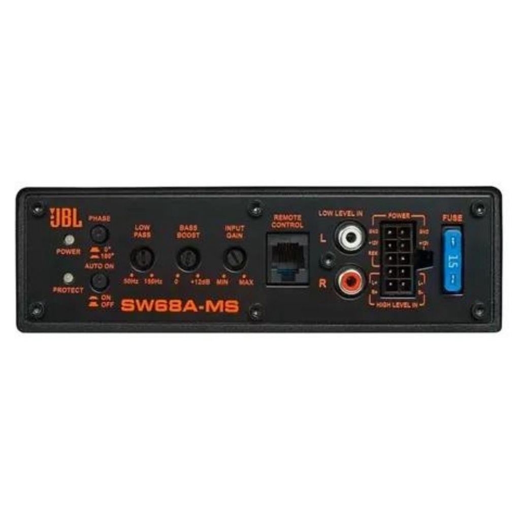 O JBL sw68a-ms oferece um som natural, com grande clareza e precisão, que é uniformemente disperso. Um alto-falante que garante potência e qualidade por igual na reprodução de conteúdos multimídia. Grande potência Desfrutar de sons graves ou de baixa frequência com excelente qualidade será possível com esta caixa de som subwoofer, mesmo quando você aumente o volume. Especificações Gerais O subwoofer JBL SW68A-MS oferece o lendário grave JBL de forma super compacta, sem ocupar espaço ou perder originalidade no carro. Equipado com um amplificador de 100W RMS no Subwoofer, proporciona uma instalação simples e rápida, além de poder ser ocultado facilmente nos lugares mais compactos do carro sempre com uma performance excepcional, melhorando a qualidade de áudio tanto de sistemas de som originais quanto de sistemas mais elaborados • Potência RMS: 100W • Impedância: 4 Ohms • Resposta de Frequência Subwoofer: 20Hz - 150Hz • Sensibilidade de Entrada, Alto Nível: 1,0V • Sensibilidade de Entrada, Baixo Nível: 300mV • Filtro Low Pass Subwoofer: 50Hz - 150Hz • Bass Boost: + 12dB • Filtro Subsônico: 20Hz • Potência do Fusível: 15A Qual o conteúdo da caixa? • 1 Subwoofer JBL SW68A-MS • 1 Manual do usuário • 1 Controle remoto para subwoofer • 1 Cabo com conexão RJ-11 • 1 Chicote para instalação • 1 Kit para fixação