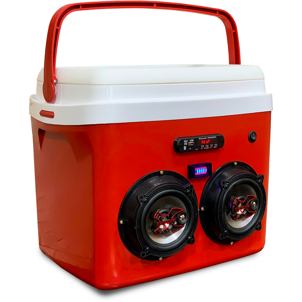 Caixa Térmica Cooler Premium 32L com Sistema de Som Integrado Acompanha a caixa: - Caixa termica 32 Litros - Placa Bluetooth Usb - Amplificador - Carregador 12v (110/220) - Alto Falante de 5 Polegadas 100w - Voltimetro - Botao liga desliga - Baterias - Controle Remoto Capacidade Generosa e Portátil: Com capacidade de 32 litros, este cooler armazena até 50 latas de 350 ml, perfeito para animar festas, encontros, ou qualquer evento ao ar livre. Som de Qualidade Integrado: Equipado com alto-falante de alta qualidade, amplificador embutido e conectividade completa (Bluetooth, USB e rádio FM), este cooler é muito mais que uma caixa térmica – ele é um centro de entretenimento portátil para você levar onde quiser. Autonomia de Bateria de Até 3 Horas: Alimentado por baterias recarregáveis que oferecem até 3 horas de reprodução contínua, ideal para garantir o clima animado da sua festa na praia, piscina ou camping. Manuseio e Transporte Confortável: Alça reforçada e ergonômica que facilita o transporte, mesmo com carga máxima. Isolamento Térmico Eficiente: Equipado com isolamento de qualidade, mantém suas bebidas e alimentos na temperatura ideal por mais tempo, garantindo frescor em qualquer ambiente. Robustez e Facilidade de Limpeza: Com design durável e vedação de alta qualidade, esta caixa resiste a impactos e previne vazamentos. O revestimento interno é anti-manchas e fácil de limpar, perfeito para manter sua caixa sempre impecável. Recomendações de Uso: Ideal para festas, dias na praia, churrascos e atividades ao ar livre. Transforme qualquer ambiente em uma verdadeira festa com a Caixa Térmica Cooler Premium – mantendo suas bebidas geladas e a música sempre no clima! Dica Extra: Para otimizar a eficiência térmica, utilize gelo picado ou packs de gelo e pré-resfrie as bebidas. Não molhe a caixa pelo lado externo! ATENÇÃO! Pode colocar gelo e as suas bebidas favoritas dentro da caixa térmica sem problemas! OBSERVAÇÕES IMPORTANTES: Não molhar a parte externa. Os equipamentos eletrônicos, como rádio, alto-falantes, plugs, etc., não são à prova d'água. LIMPEZA: Para limpar ou lustrar, utilize um pano úmido com água ou silicone em gel. ----------------------------------------- Caixa Preta - Falante Orion 5 Caixa Vermelha - Falante Bravox 5 Caixa Azul - Falante Hurricane 5 Caixa Bege - Falante Leson 5